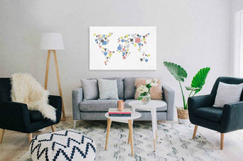 La alegerea mărimii tabloului, măsoară lățimea obiectului deasupra căruia va fi agățat, de exemplu canapea sau masă. Tabloul ar trebui să aibă o lățime de aproximativ 60-75% din lățimea acestui obiect. Dacă canapea ta are 200 cm, lățimea tabloului ar trebui să fie în jur de 120-150 cm. În ceea ce privește înălțimea, dacă ai un spațiu liber de 150 cm deasupra canapelei, tabloul nu ar trebui să fie mai înalt de două treimi din acest spațiu, adică aproximativ 100 cm. Tablourile noastre în dimensiuni de ex. 150x100 cm și 100x100 cm sunt ideale pentru ca camera să pară echilibrată și armonioasă.