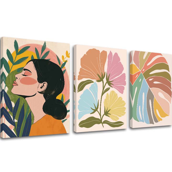 Colecția Art in Simplicity cuprinde seturi de tablouri din trei piese care prezintă flori abstracte, siluete feminine, linii organice și geometrie delicată. Culorile contrastante, liniile curate și motivele simpliste vor adăuga prospețime, spirit ludic și eleganță atemporală locuinței dumneavoastră.