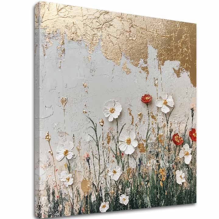 Florile albe sunt asociate în mod tradițional cu puritatea, inocența și seninătatea. În colecția Glamour Touch, aceste flori contrastează frumos cu tonurile acrilice moi, aducând luminozitate și armonie în interior. Ideală pentru spațiile minimaliste și scandinave.